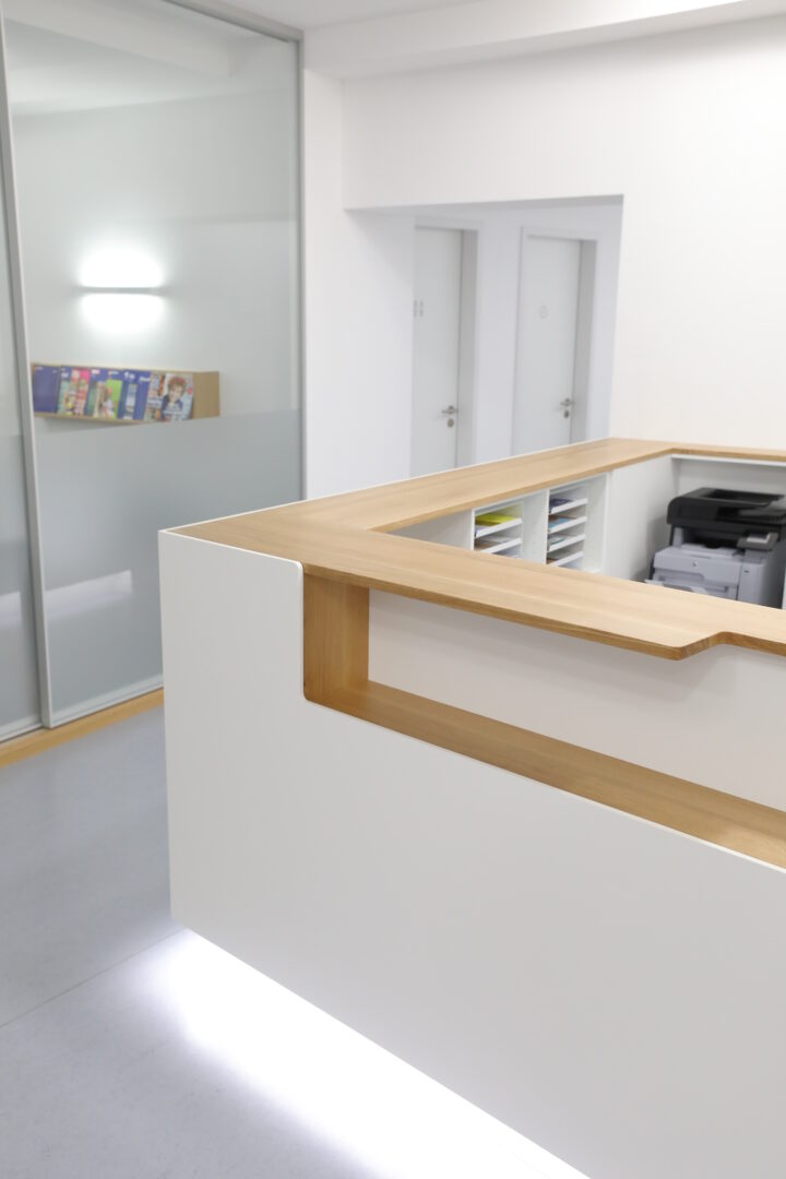 HNO Zentrum FFB Grundriss Planung & Zonierung Digitales Aufmaß 3D Entwurfsplanung Detailausarbeitung der Möblierung Planung lose Möblierung Werkplanung & Arbeitsvorbereitung Produktion der Inneneinrichtung Termingerechte Montage